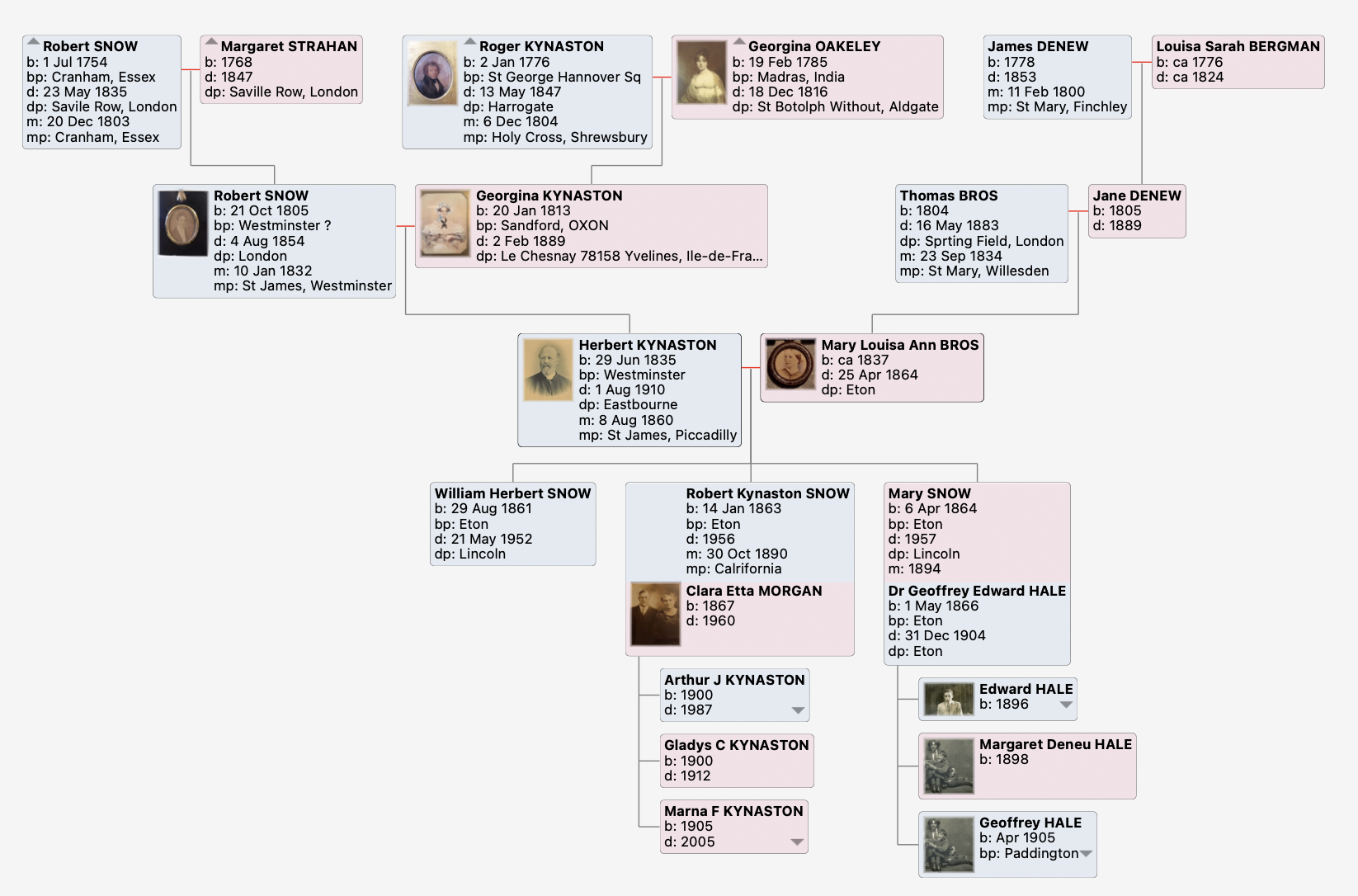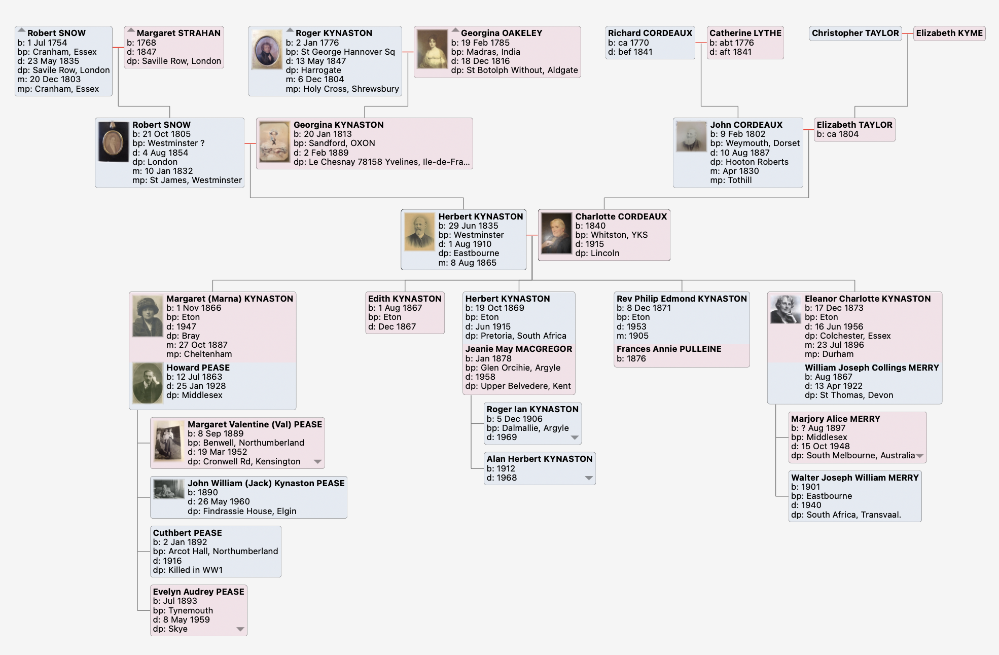 Below is a short tree centered on Hebert and Charlotte, and as it is centered on them, the first three of Herberts children dont appear. Thus there is a second tree centered on Herbert and Mary to show different lines of ascent and decent.